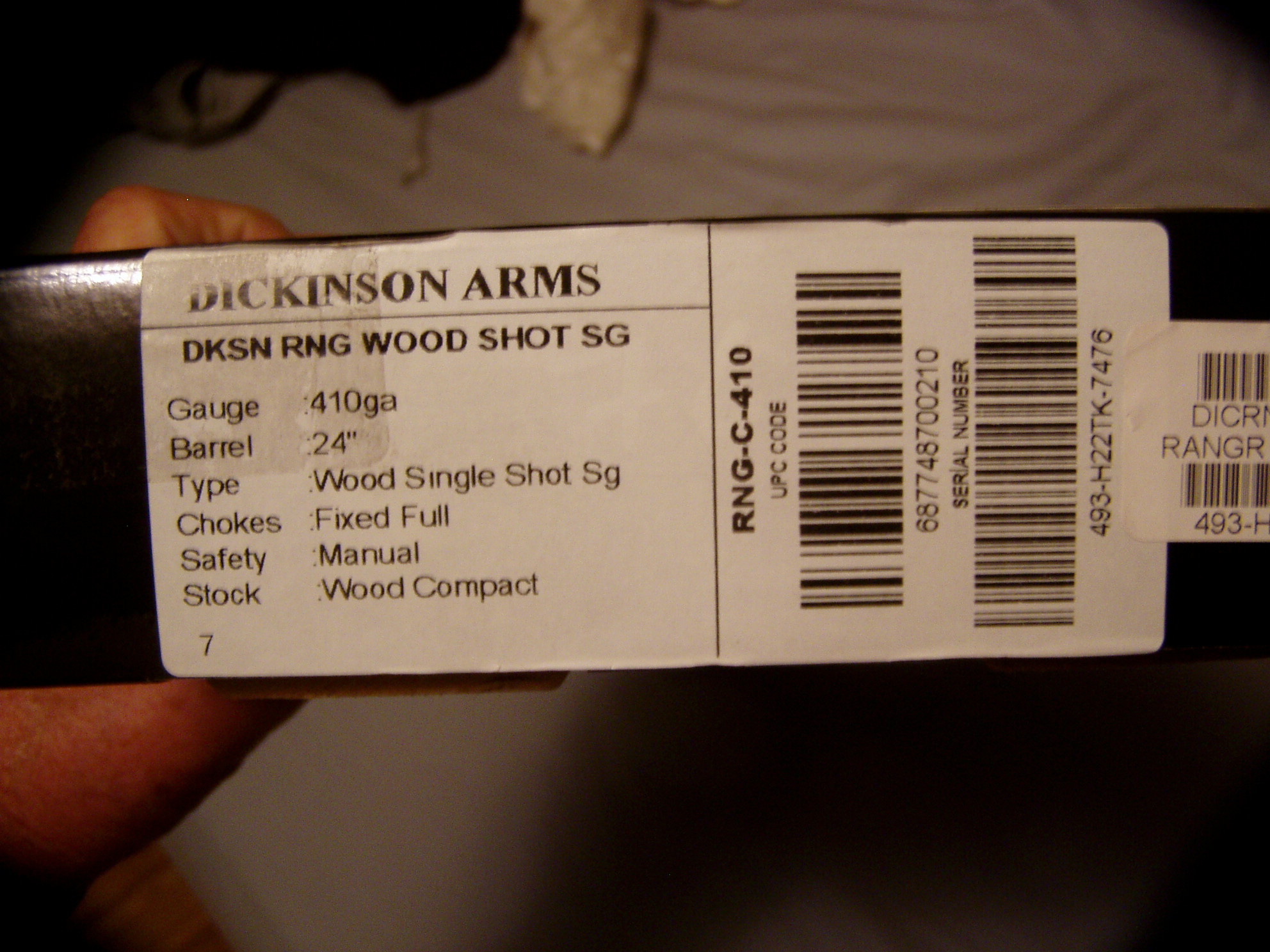 DICKINSON RANGER COMPACT DICKINSON RANGER COMPACT 410 3 INCH VENT RIB SINGLE SHOT $ 175.00 DICKINSON RANGER COMPACT 410 3 INCH VENT RIB SINGLE SHOT $ 175.00 DICKINSON RANGER COMPACT WOOD 410GA 24IN SINGLE Action: Break Open - Single Shot • Finish: Black/Silver • Barrel Length: 24" with 3" Chamber • Sights: Bead Front • Stock: Wood • Weight: 4.4 lbs. • Overall Length: 40" Fixed Full Choke Length of Pull: 12.75" Dickinson Arms Ranger Compact Youth 410 Gauge Single Shot Shotgun - 24in barrel - Dickinson's expert designers have optimized weight and balance to ensure comfortable hunting all day long. $ 175.00 Ask Question Paymentinfo: Payment by US Post Office Money Order Only Previous Article SAR 9X PLATINUM 9MM DUTY PACKAGE $ 399.00 Next Article ROCK ISLAND 1911 A2 SUB COMPACT BBR 3.10 45ACP $ 499.00 Print