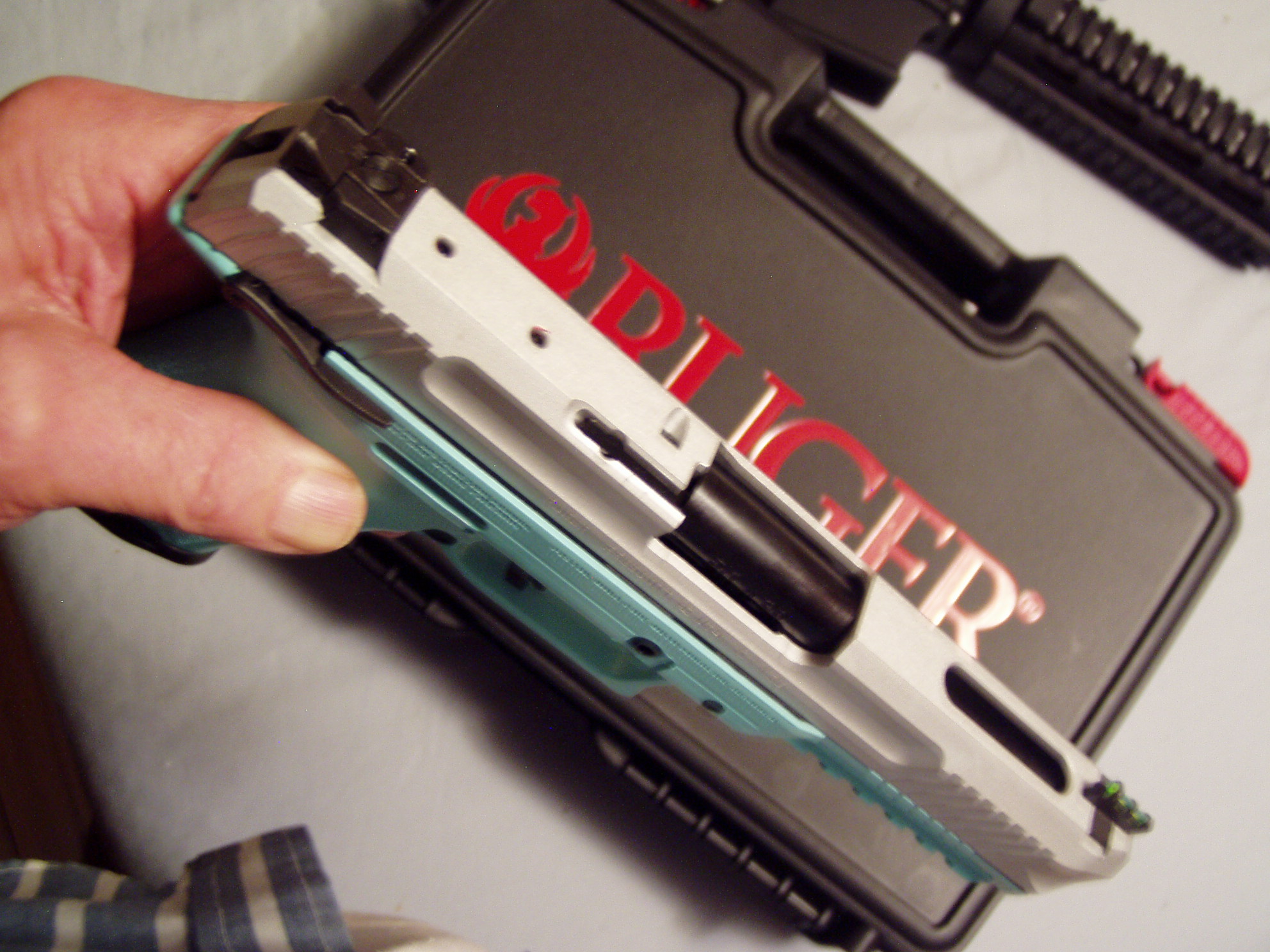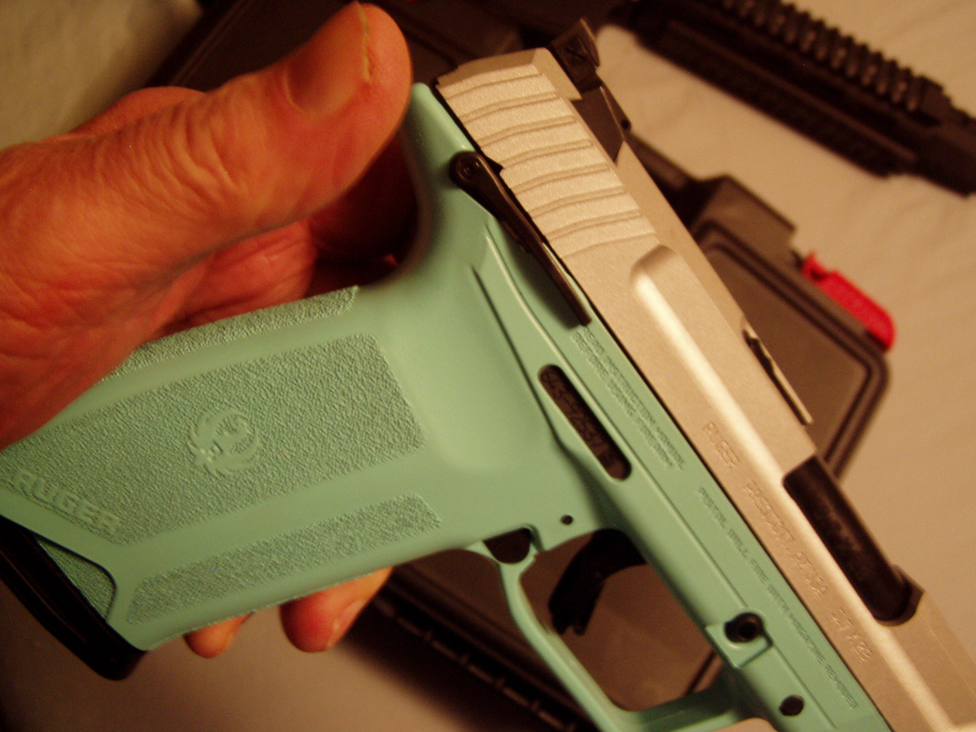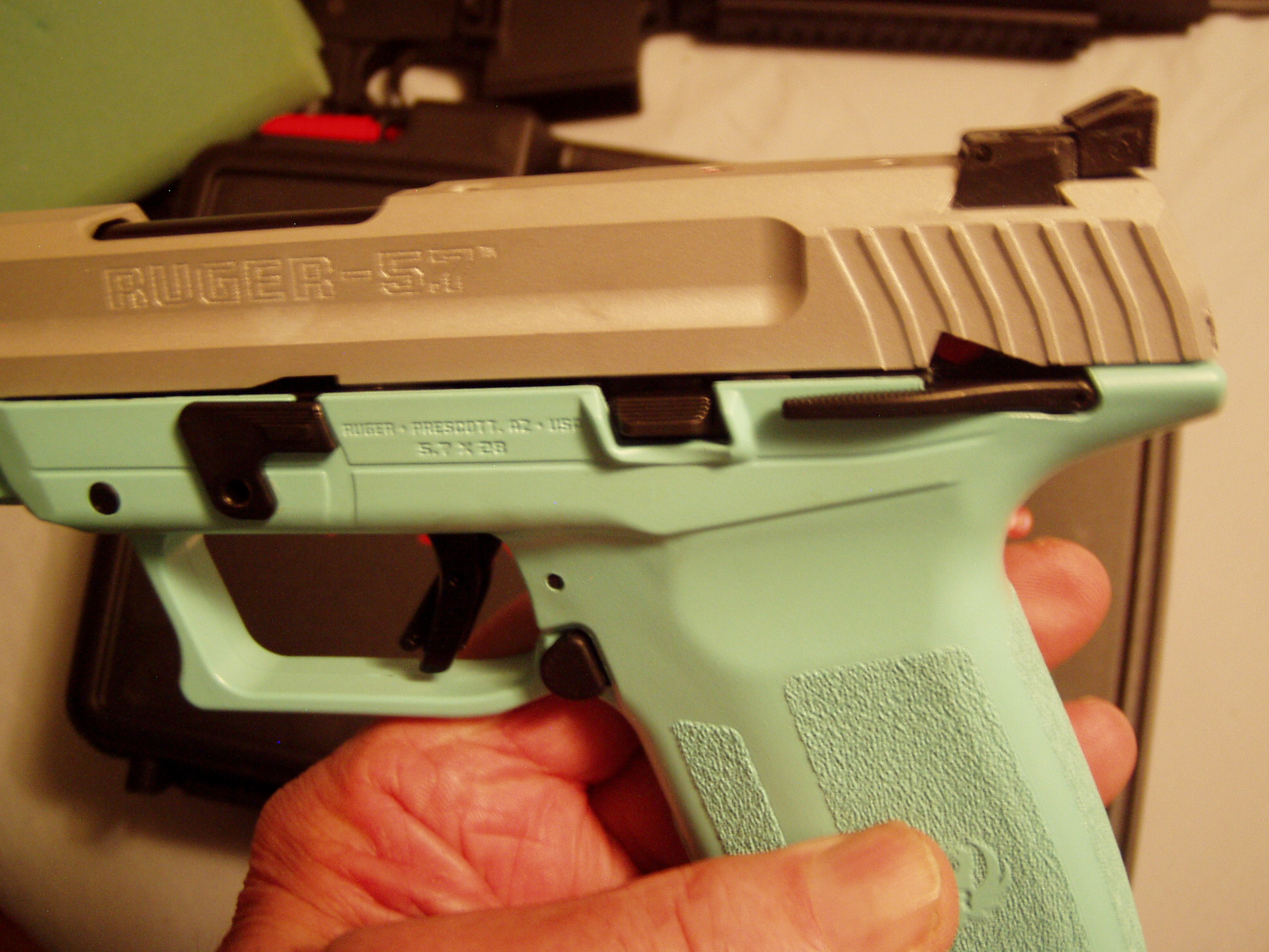 RUGER 5.7 DISCONTINUED TALO EDITION RUGER-57 PISTOL SILVER SLIDE & TURQUOISE LOWER RECIVER $ 575.00 DISCONTINUED TALO EDITION RUGER-57 PISTOL SILVER SLIDE & TURQUOISE LOWER RECEIVER $ 575.00 DISCONTINUED TALO EDITION RUGER-57 PISTOL ,TWO 20 RD MAGAZINES, 5 INCH BARREL, SILVER SLIDE & TURQUOISE LOWER RECEIVER, DUAL SAFETY LEVER ,ADJUSTABLE REAR SIGHT, FIRE OPTIC FRONT SIGHT, NEW IN CASE $ 575.00 Ask Question Paymentinfo: Payment by US Post Office Money Order Only Previous Article DMPS A15 RFA3-0C-S 556 NATO 16 INCH STAINLESS STEEL BARREL 1IN 9 WITH NIKON M223 1-4X20 SCOPE $ 775.00 Next Article BUSHMASTER XM15-E2S TARGET SS 7/8 INCH BARREL $ 726.00 Print
